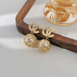 Boucles d'oreilles élégantes de luxe en plaqué or avec fleur et perle pour femmes, boucles d'oreilles vintage en cristal avec goutte d'huile, vente en gros