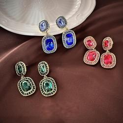 Vintage geometrik kare taş damla saplama küpe moda bildirimi kristal küpe takı kadınlar için